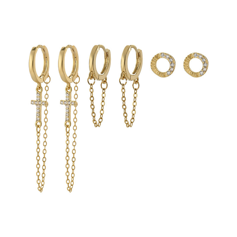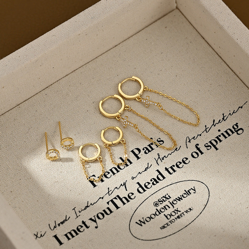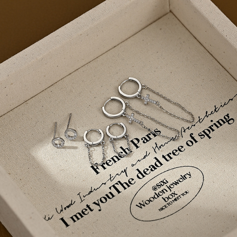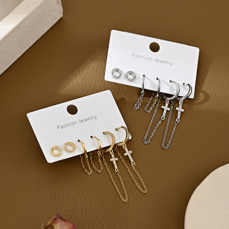 One Card Three Pairs Set Earrings Female Ear-caring Cross Ear Rings