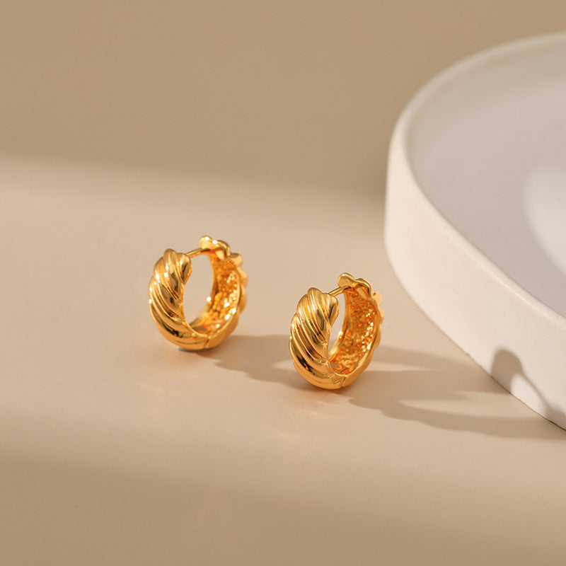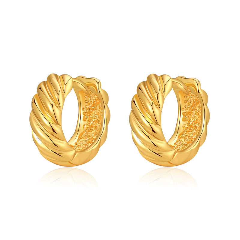 Retro Hong Kong Style Gold Color Retaining Earrings Plated 18K Real