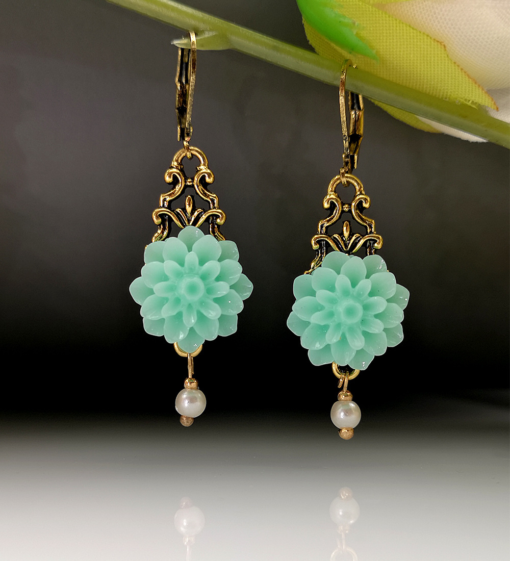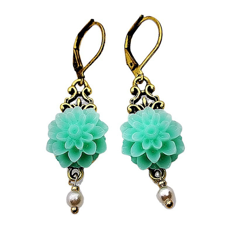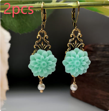 Rongyu Bohemian Fashion Chalcedony Flower Pearl Earrings