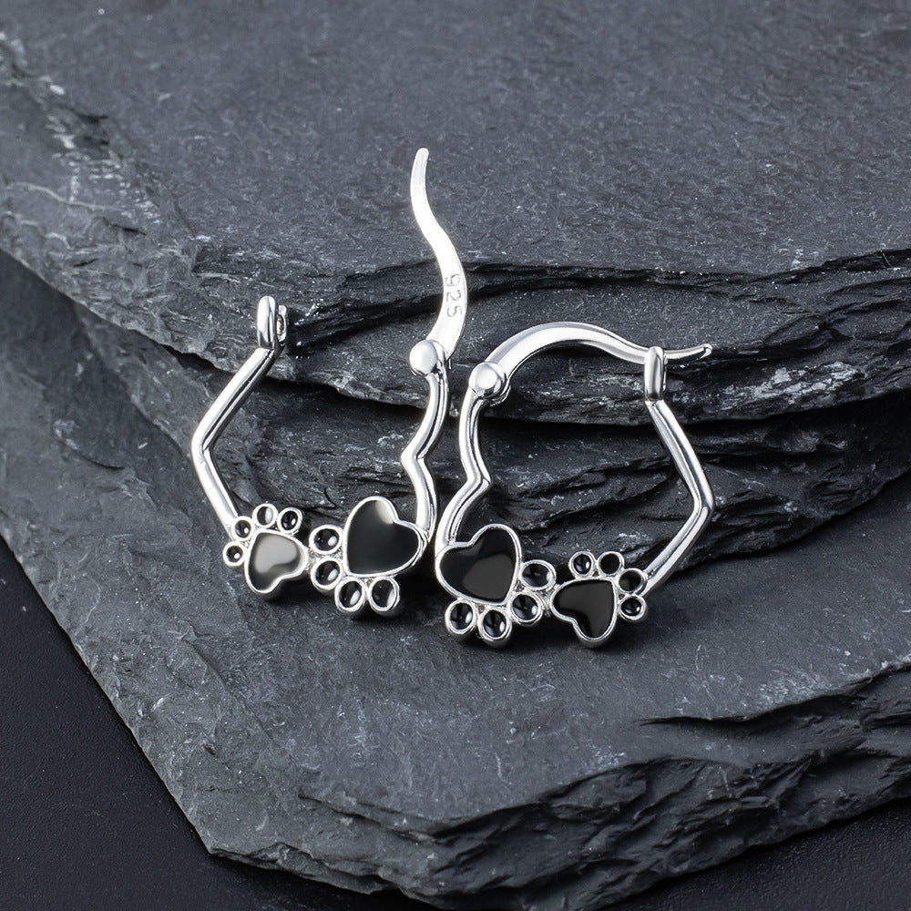 925 Silver Simple Earrings Cat's Paw Dripping Animal Series