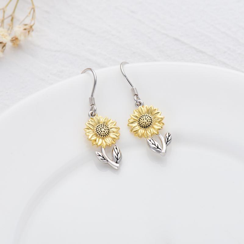 925 Sterling Silver Sunflower Dangle Earrings for Women Girls Teen