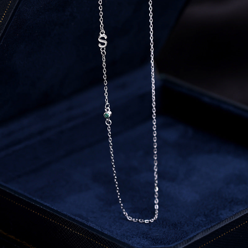 Banyan S925 Silver English Letters Necklace Light Luxury Niche Design Geometric Fashion Zirconia Collarbone Chain New Tide