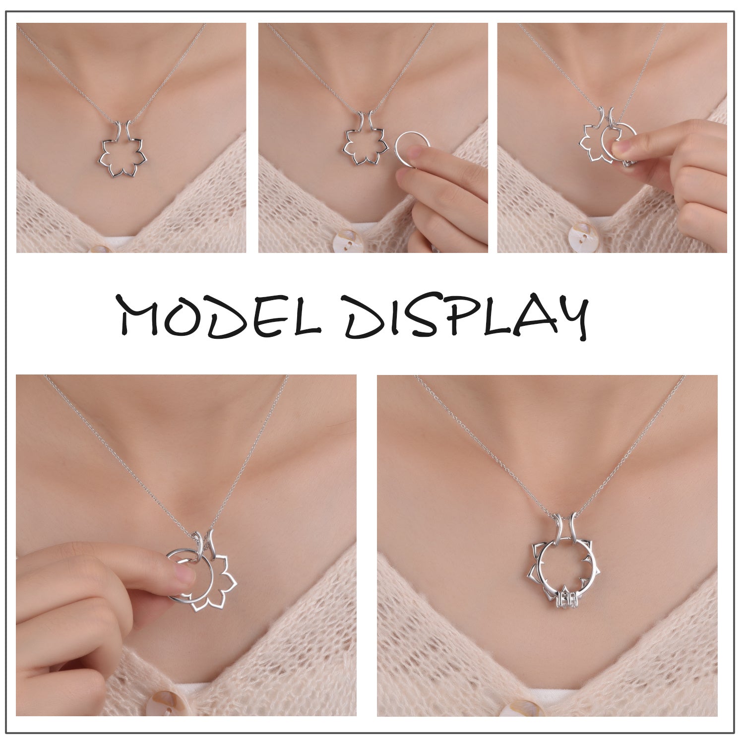 Sterling Silver Ring Holder Keeper Flower Pendant Necklace for Women