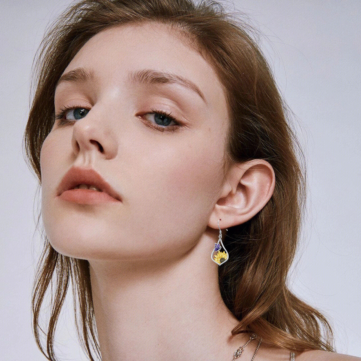 Sterling Silver Sunflower Dangle Earrings with Purple Butterfly Gift for Women
