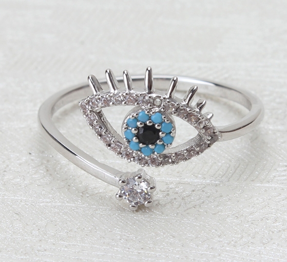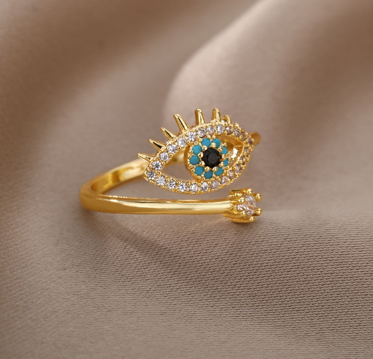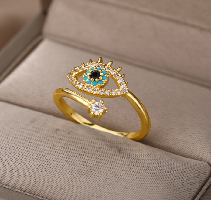 Evil Eye Ring with Open Design and Stone Inlay for Women