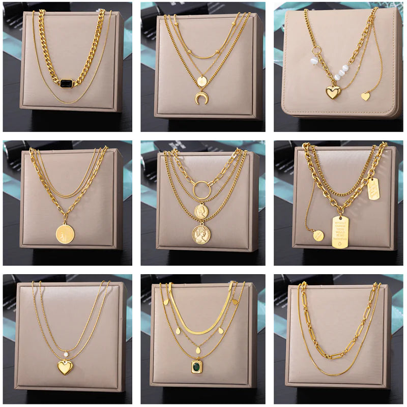 Explore the elegance and sophistication of our Ladies' Banquet Stainless Steel Sweet Multi-Layered Geometric Pendant and add this beautiful piece to your collection today.