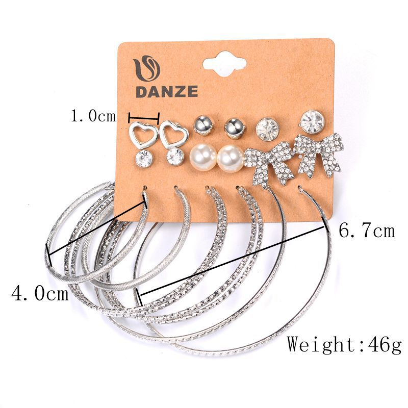 Pearl Bow Heart Hoop Earrings & Geometric Stud Set